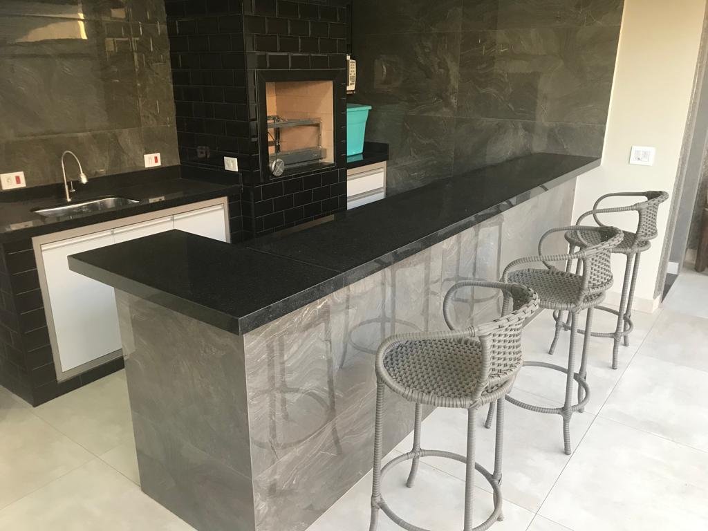 • Área gourmet com churrasqueira, pia, balcão de apoio e WC completo
